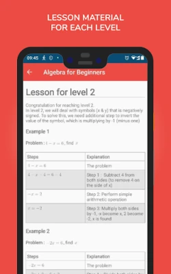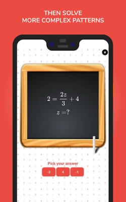 Inside of each quiz in a level, player will be asked to find the missing value of an unknown number that is represented by a letter symbol (e.g: x,y). The lesson in each level provides player with the skill required to find the missing value.