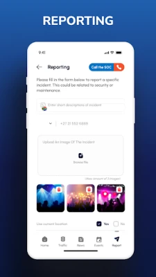 Easily and conveniently report incidents to our 24/7 Security Operations Centre including images and current locations with our direct reporting function.