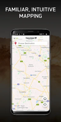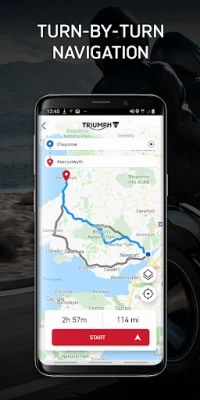 • Start your navigation and follow simple turn-by-turn navigation instructions live on your Triumph’s TFT instrument pack.