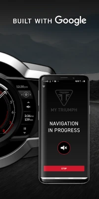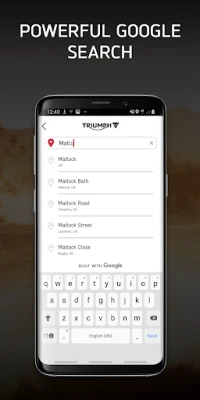 The new My Triumph app is built with Google and works in conjunction with the My Triumph Connectivity System to provide live navigation on your motorcycle via the TFT instruments. Facilitated by an accessory fitted My Triumph Connectivity Module, the app allows you to access the following great features: