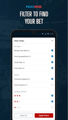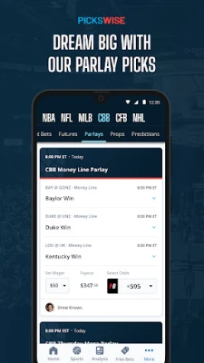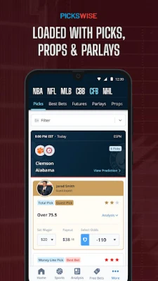 Within our app you will find our expert sports betting advice on all of the top sporting action, from the NFL, NBA, MLB, NHL, NCAAF & NCAAB every week, all season long. From straight up money line plays, to betting the spread, totals, props, parlays and futures. Make your next Bet Better with Pickswise.