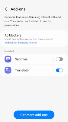 Samsung Internet for Android allows 3rd party apps to provide filters for content blocking, making browsing safer and more streamlined.
