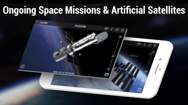 Solar Walk 2 Free introduces you to the history of space exploration and the outstanding space missions in the finest details. Only with Solar Walk 2 you will be able to see highly-elaborated, realistic 3D models of spaceships, satellites and interplanetary stations in real action. You will see where they started, track the real trajectory of their flight path, watch gravitational maneuvers, view real pictures made during the mission.