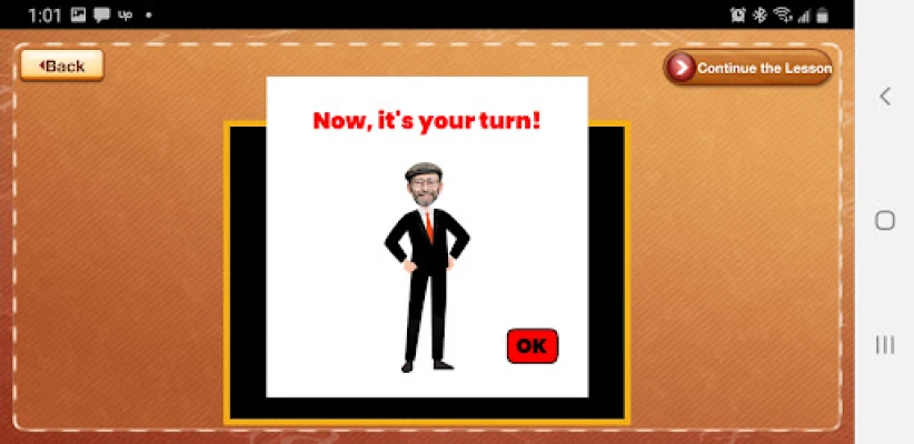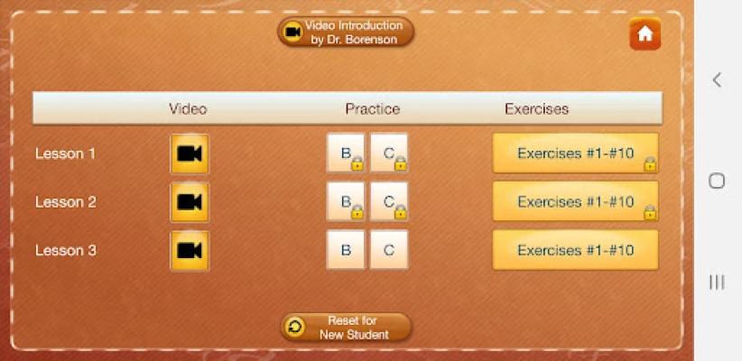 • Success with the two practice problems enables the app user to access the ten lesson exercises.