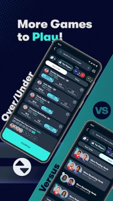 We have 2 main types of games Over/Under and Versus. Over/under games allow you to pick from multiple players' stats and how they will perform in the game using a simple over/under interface while our Versus game allows you to select a stat between 2 players and watch them battle it out on during the game.